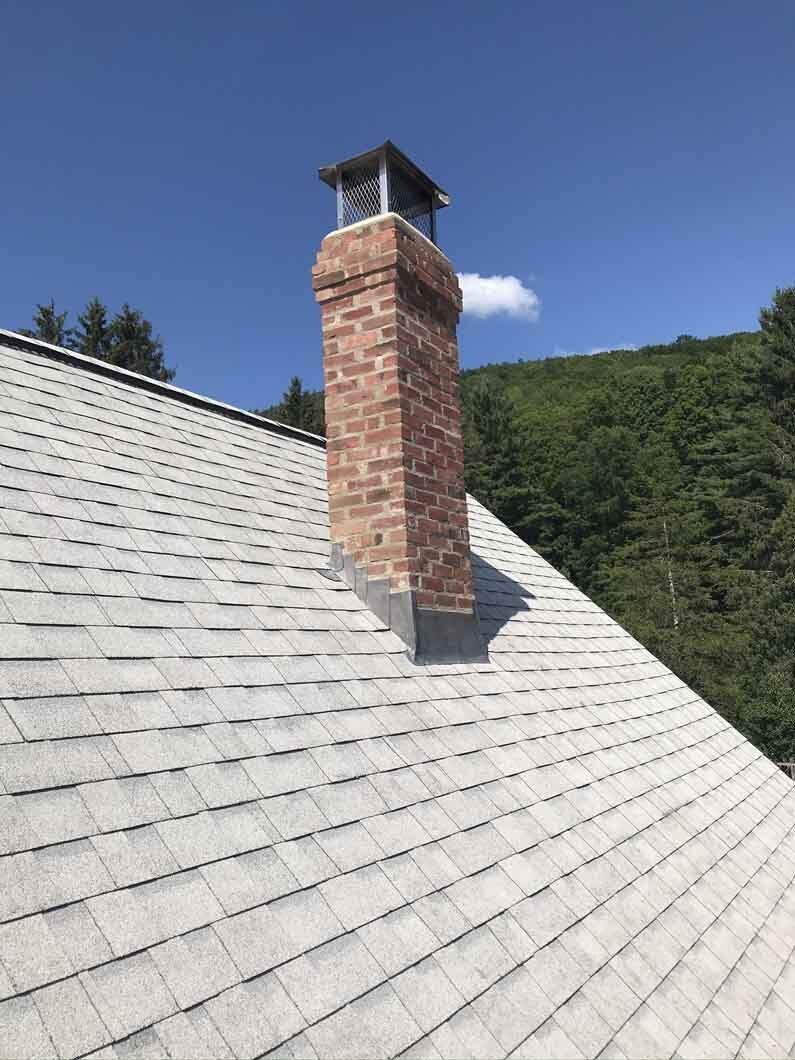 Chimneys are a frequently neglected item on people's homes. Masonry chimneys suffer the most extreme abuse out of nearly all exterior features on a home. Often damage to mortar or brickwork cannot be easily seen from the ground. When assessing a roof for replacement, we take into account the shape of the chimney in order that we do a comprehensive job when performing roof work. From repointing or redoing lead flashing to complete roofline up rebuilds, we can tackle chimney issues as a stand alone project or before a roof is replaced, thus eliminating staining or damage to a new roof system were chimney work to be performed after a roof is replaced.